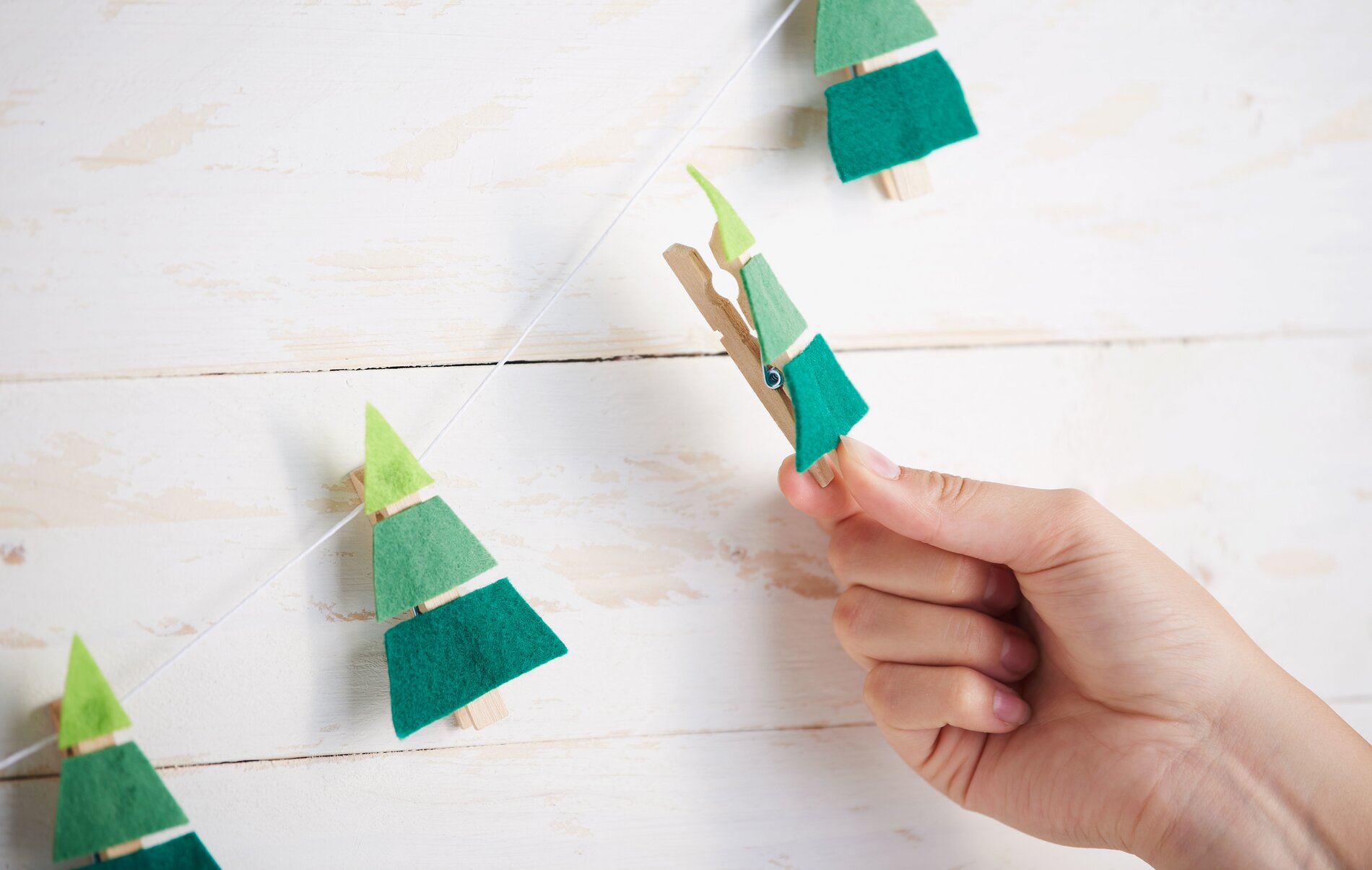 The small Christmas trees Felt can easily be made together with children and the green Christmas tree garland is also practical and can be used as a small or for a Christmas Advent Calendar card collection.