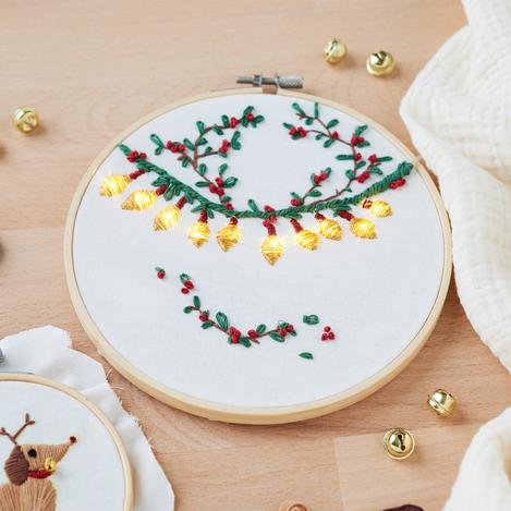 Now it's time to embroider the motifs. Follow the contours that you transferred to the fabric in the first step and let your creativity run wild. Use different embroidery techniques to give your motifs depth and texture. And also embroider over the LED bulbs.