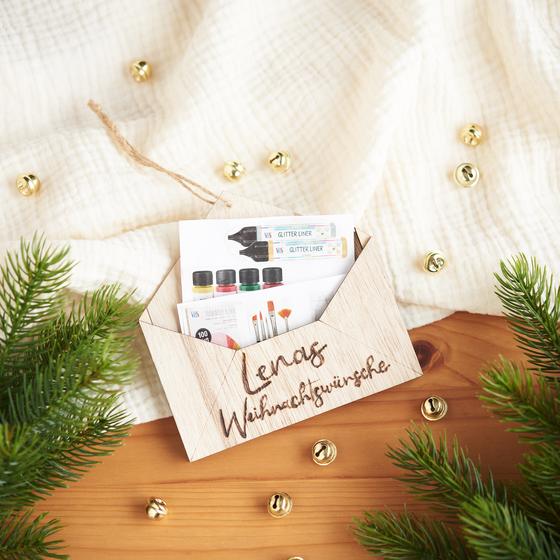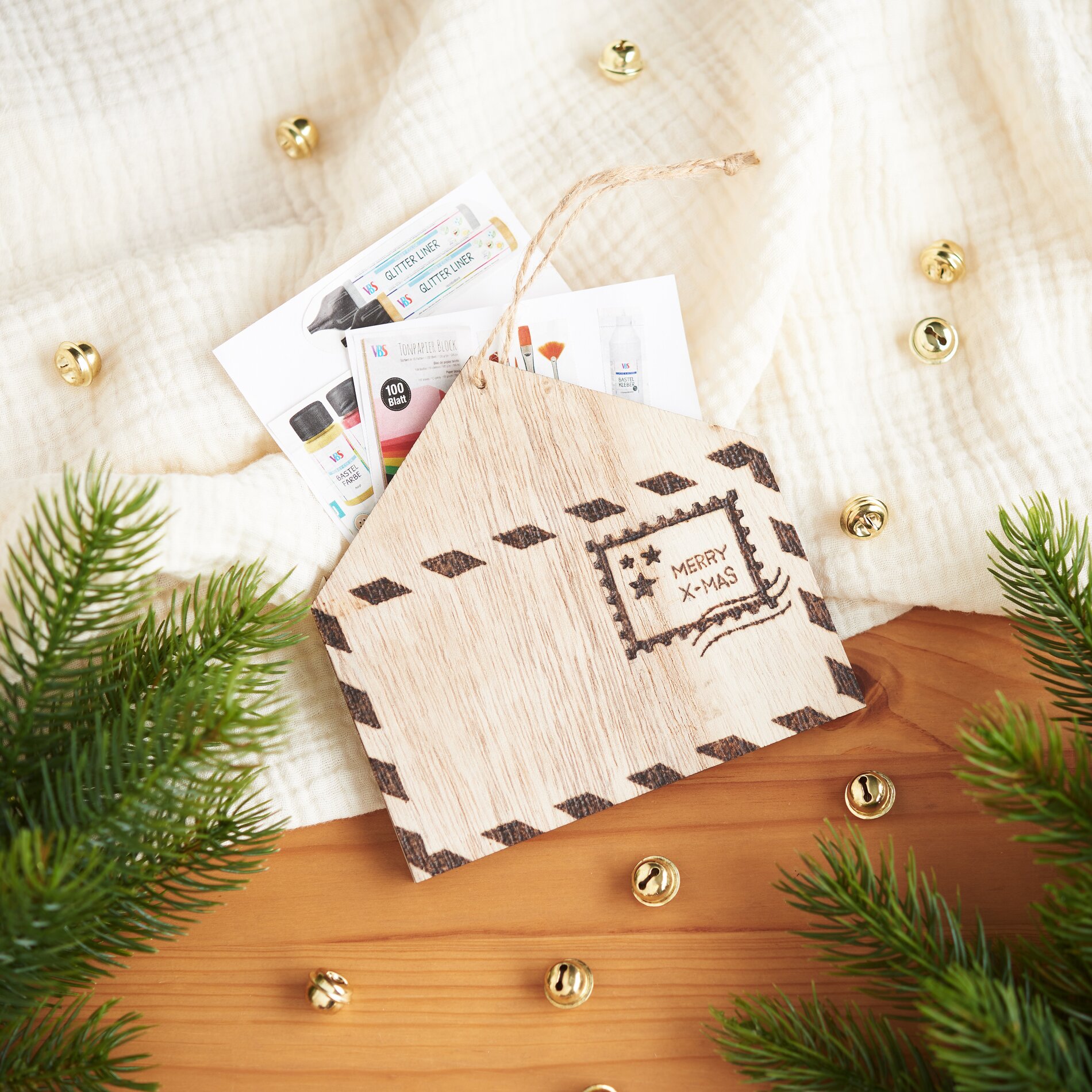 Step 3: For those who want to get creative, freehand drawing is a great option. Draw your design directly onto the wooden envelope with a pencil. Be patient and precise when drawing to achieve a successful result. You can practise in advance on a Paper to gain more confidence.