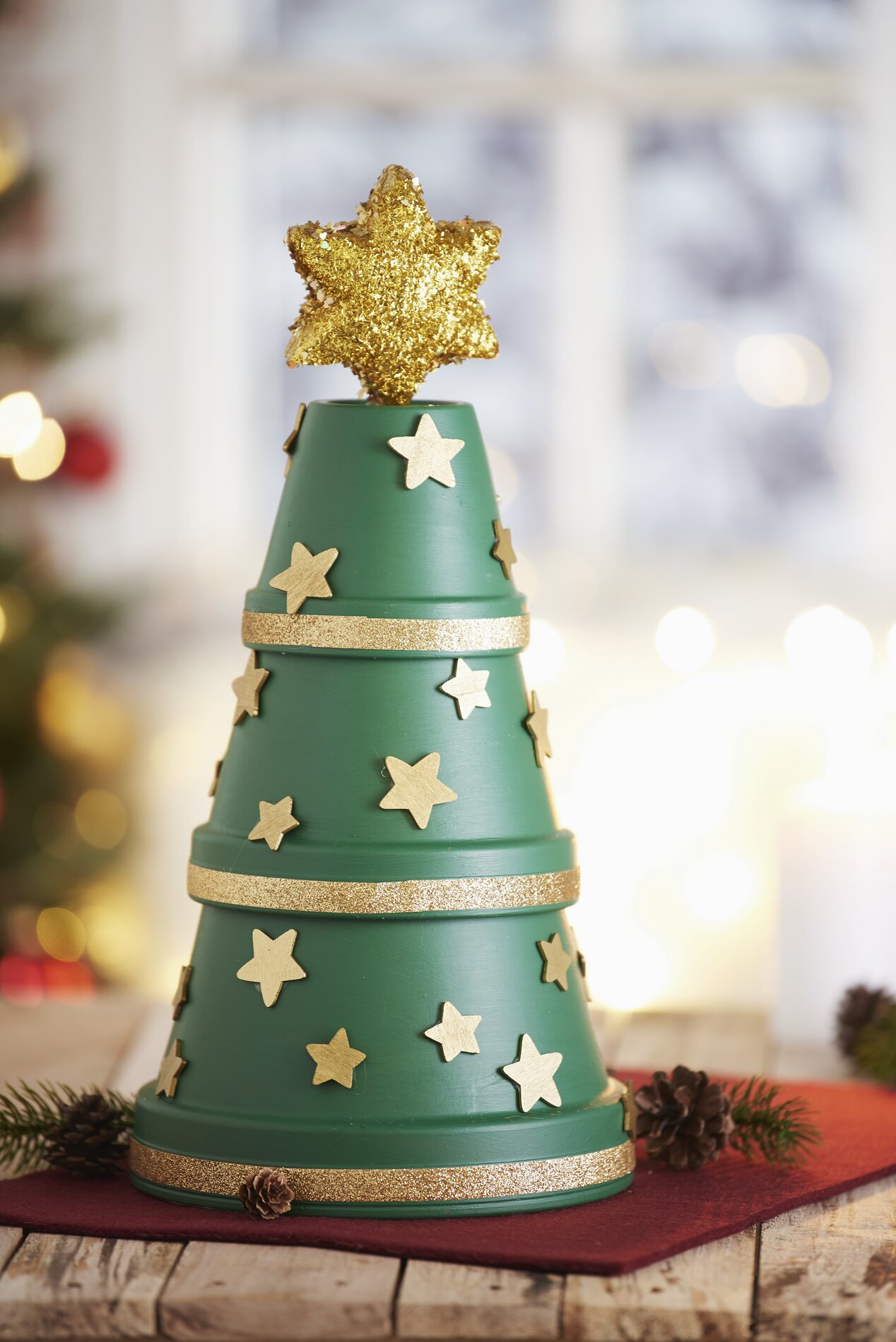 Glue the star to the top of the terracotta tree and decorate it in your home, together with some fir greenery and pine cones.