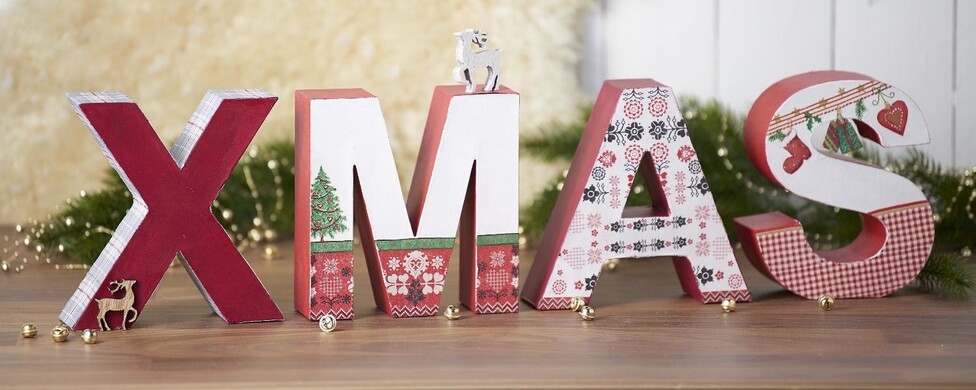 X-Mas is so beautiful! Enjoy the handicraft fun with Napkin technique anddesign cardboard letters to a timelessly beautiful Christmas decoration.