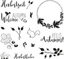 Beautiful Clear Stamps "Autumn forest" with a motif size of approx. 0.5 x 1.0 cm to 1.5 x 5.0 cm made of silicone. The stamp set consists of 14 clear stamps.