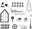 Enchanting Clear Stamps "Gnome world" made of silicone. The stamp set included 13 stamps with a motif size of approx. 0.7 x 1.0 cm to 2.7 x 4.1 cm.