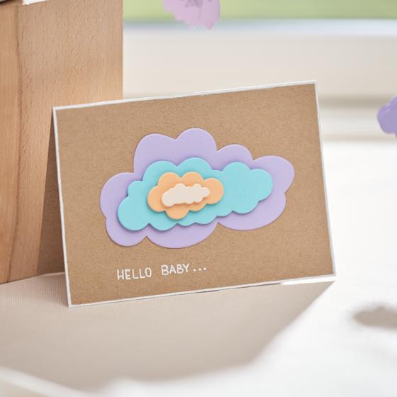 Now that you have punched out the clouds in four different sizes, glue them on top of each other using 3D glue pads . This layering technique gives the clouds a three-dimensional effect, adding structure and volume to your mobile.