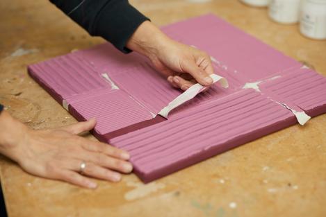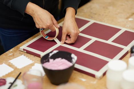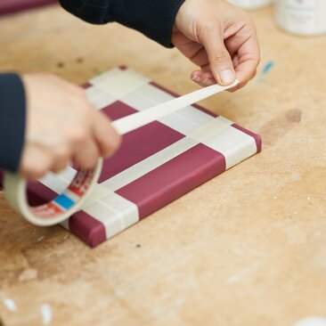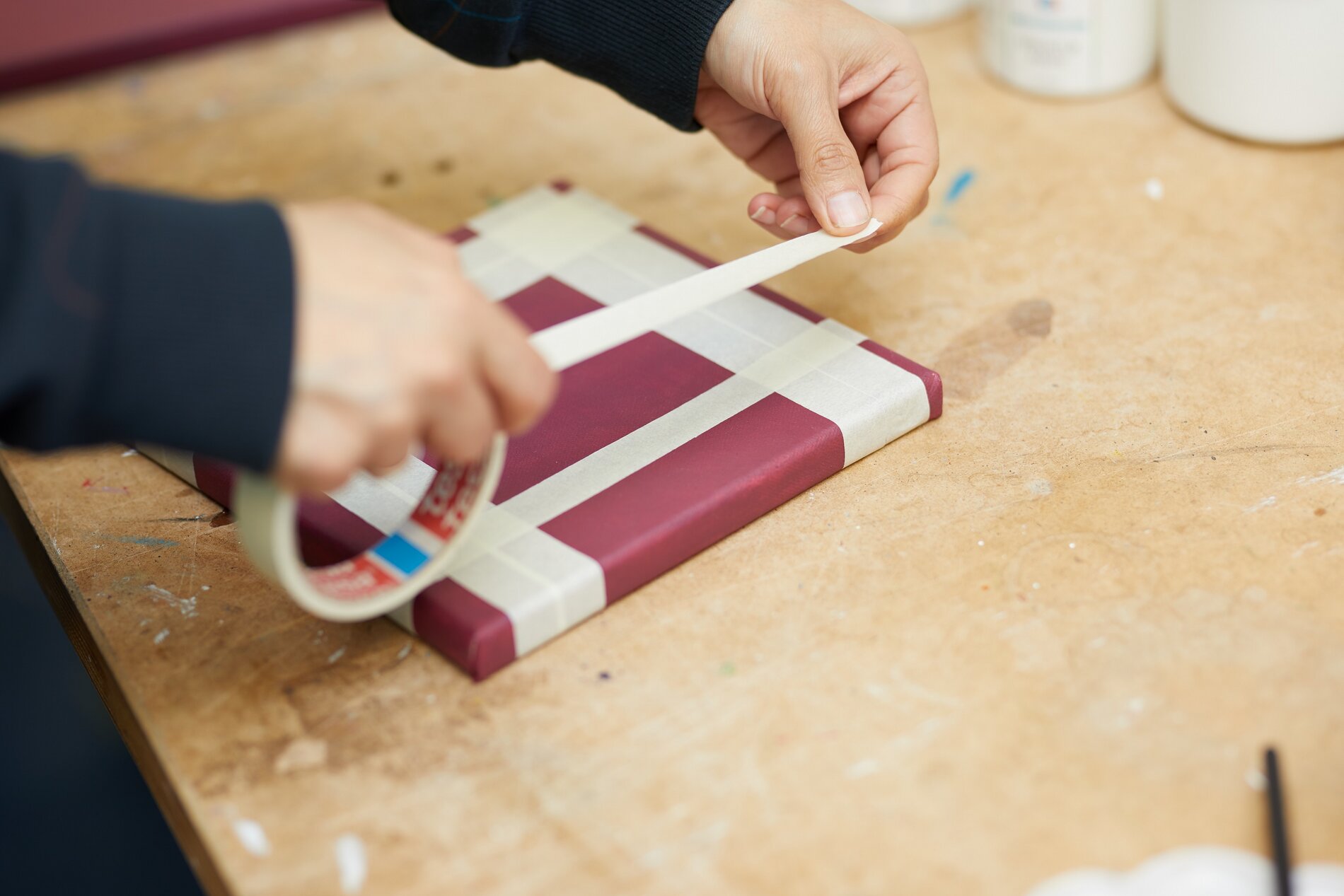 As soon as the paint has dried, tape several squares and rectangles with masking tape.