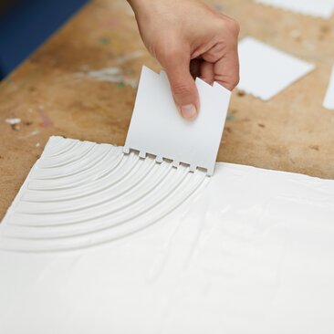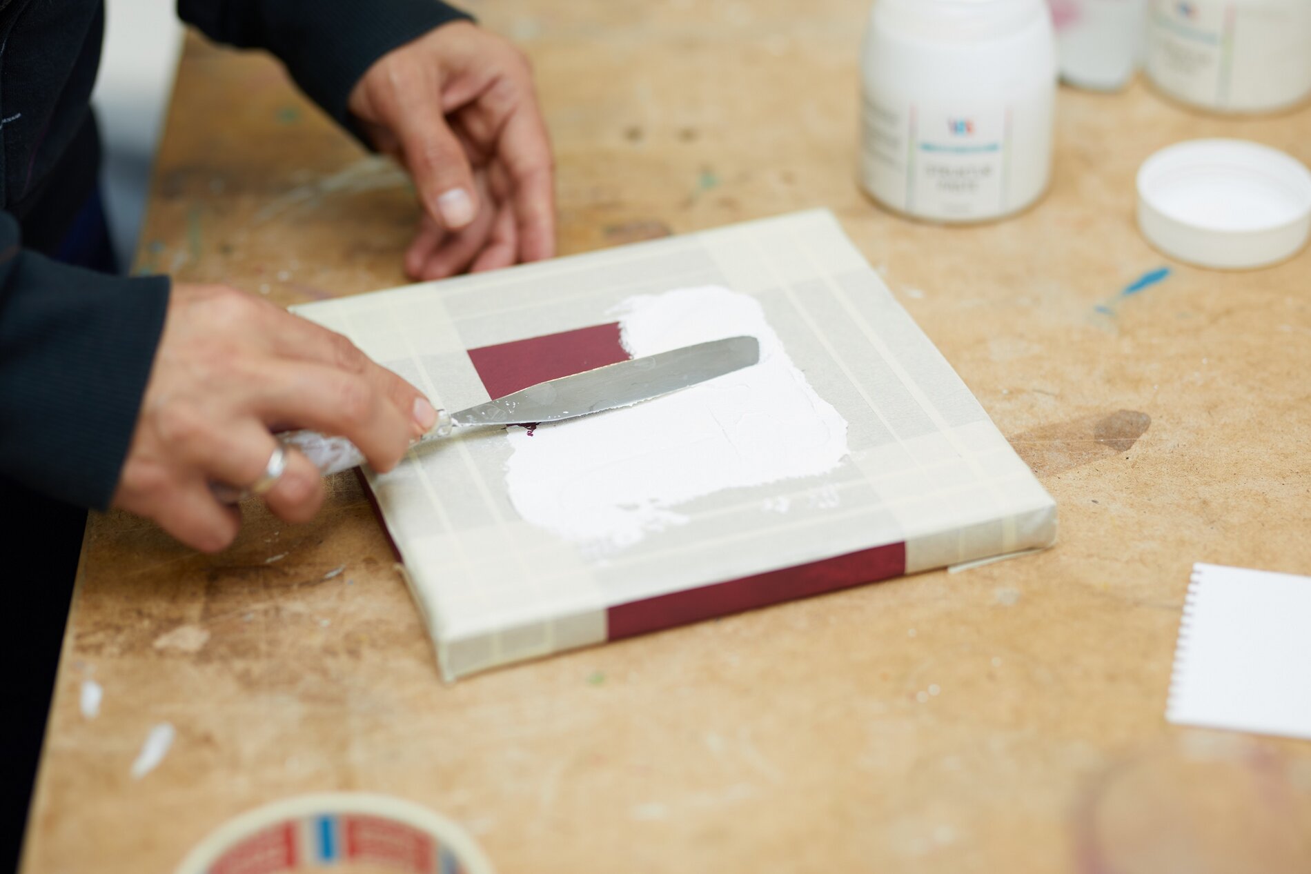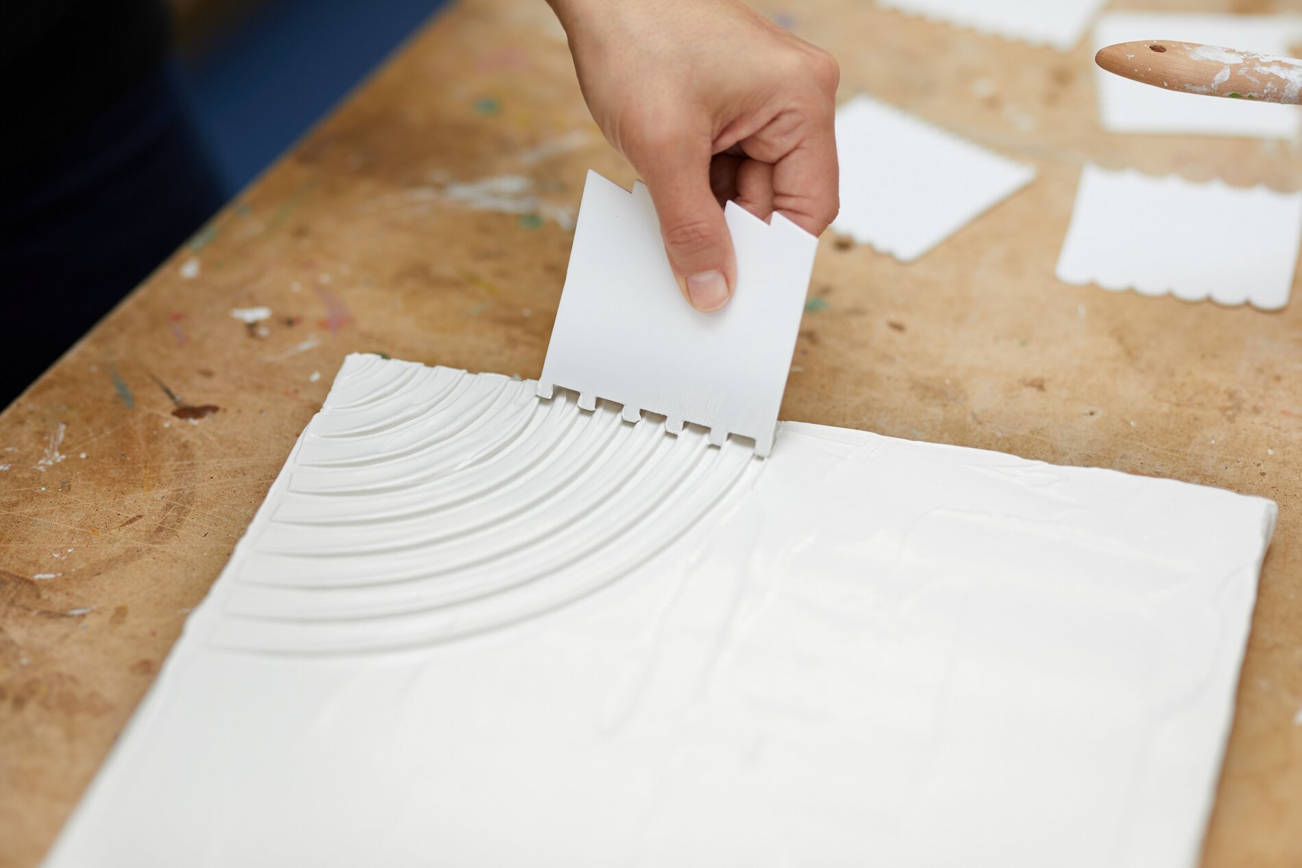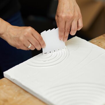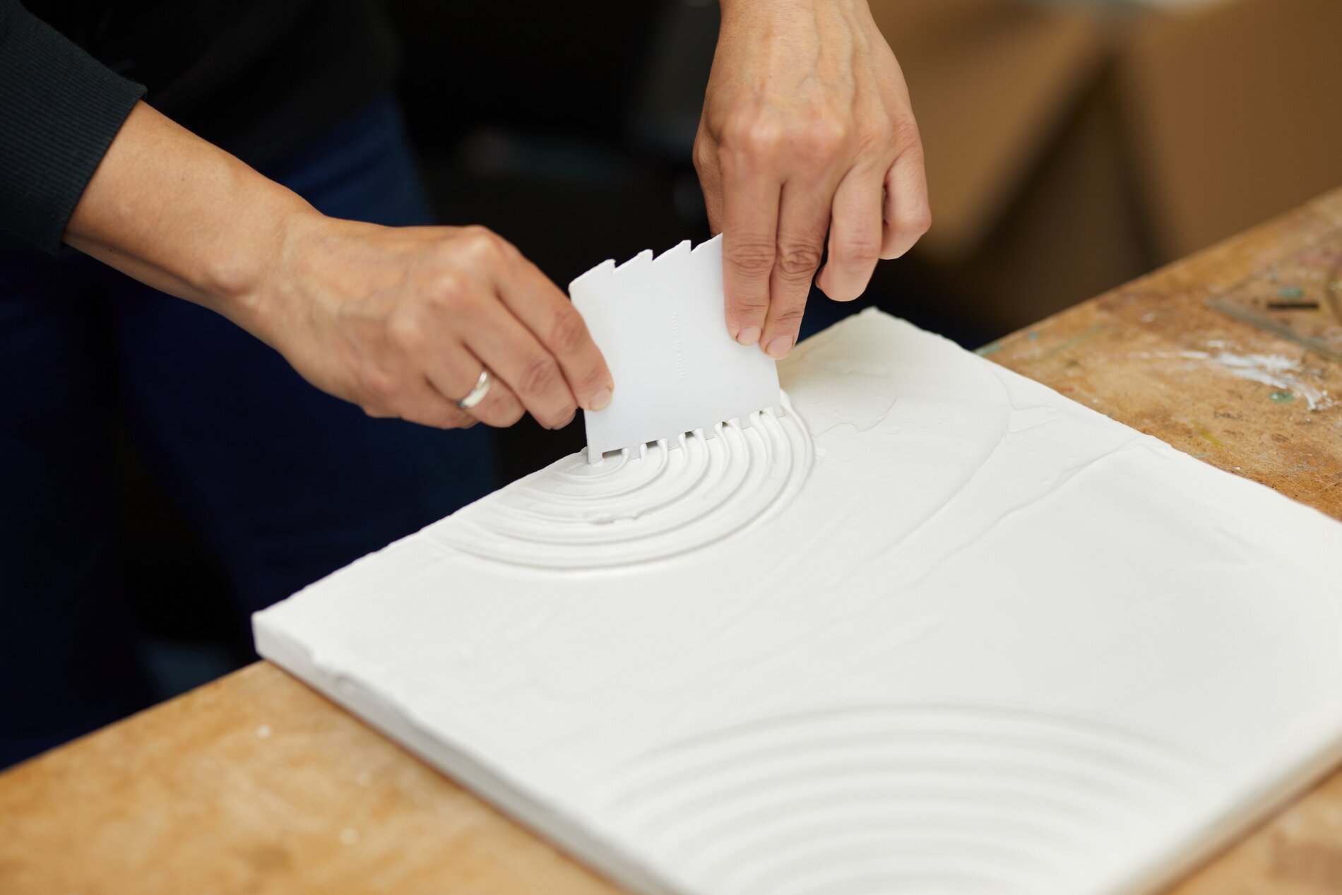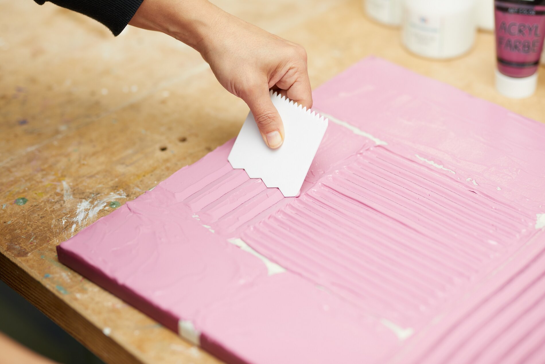 Now the creative part begins! Now you can use a palette knife to make different patterns in the still wet paste. Try out different effect spatulas and see which patterns you like best. If you notice that you have used too much or too little paste, remove or add a little more paste.