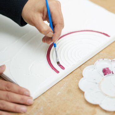Now you can use acrylic paint to add beautiful accents. For example, paint over the motifs. In our decorative example, we designed one of the patterns entirely with acrylic paint and added a few color accents to the other pattern only .