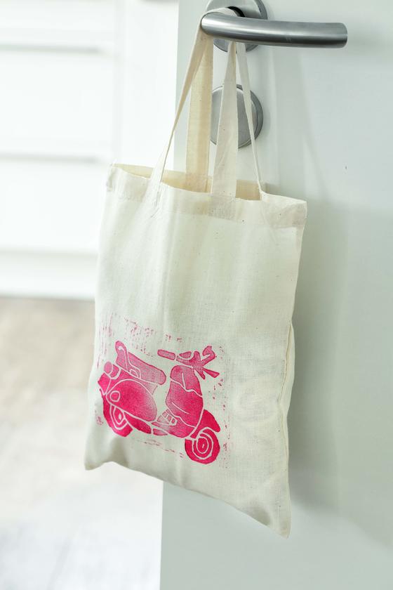 Make your own printing plate, then simply transfer the design using copy paper, for example onto a cloth bag.