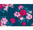 The flowery Cotton fabric "Bouquet of flowers" is one fabrics by the meter, has a width of about 150 cm and weighs about 150 g/m². The motif size of the magnificent flower pattern is approx. 15.0 x 13.0 cm and 21.0 x 20.5 cm. It shows pink and red flower bouquets on a dark blue background.