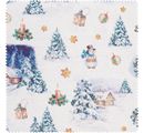 The Cotton fabric" White Christmas "weighs approx. 140 g/m² and is approx. 150 cm wide. It consists of 100 % cotton. Winter and Christmas motifs are shown on a white snowy background.