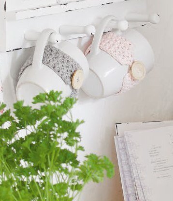 Crochet 28 air stitches. In the first row you start with the firm stitches in the second air stitch seen from the needle. Crochet to the end in firm stitches, form a reverse air stitch and crochet in the scheme about 4 cm high and cast off the stitch. Now crochet a loop of air stitches on one narrow side and sew on the button on the opposite side. Keep in mind that the button should fit through the loop and not be too loose, so that the Braid can later be attached to Position stays on the cup. Sew up all the threads. Simply place the finished crochet-Braid around the cup and button it up.