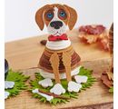 An adorable Craft kit "Dog" made of felt. The height of the finished felt figure is approx. 18.5 cm with a felt thickness of approx. 0.3 cm. The material is 100% polyester. With numbered individual parts, which are simply plugged one after the other on an enclosed wooden stick. With the help of the instructions, everything is very simple. In addition, you will need scissors to cleanly cut out the felt pieces and some hot glue.