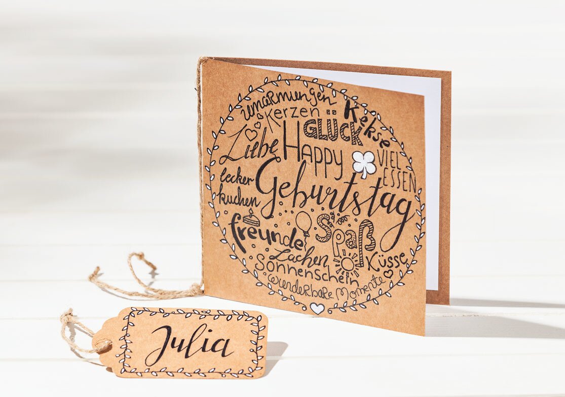 In handlettering, letters and messages are not written by PC, but artistically by hand. In addition, the message is supported by small squiggles, lines and banners.