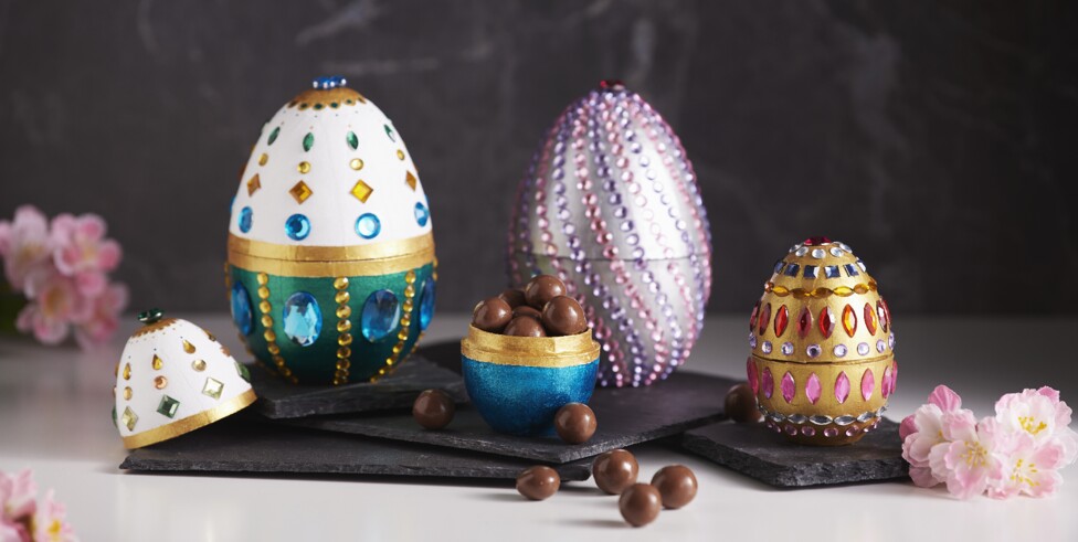 Now the self-designed decorative eggs can be filled with different things like chocolate balls, necklaces and bracelets or with small gifts.