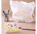 With the enclosed instructions and inspiration on the back of the box or the QR code, you can let your creativity run wild and design a cool pencil case and tote bag with cute motifs in cheerful colors. Iron everything afterwards to fix the colors, after which your designer piece can even withstand a mild hand wash.