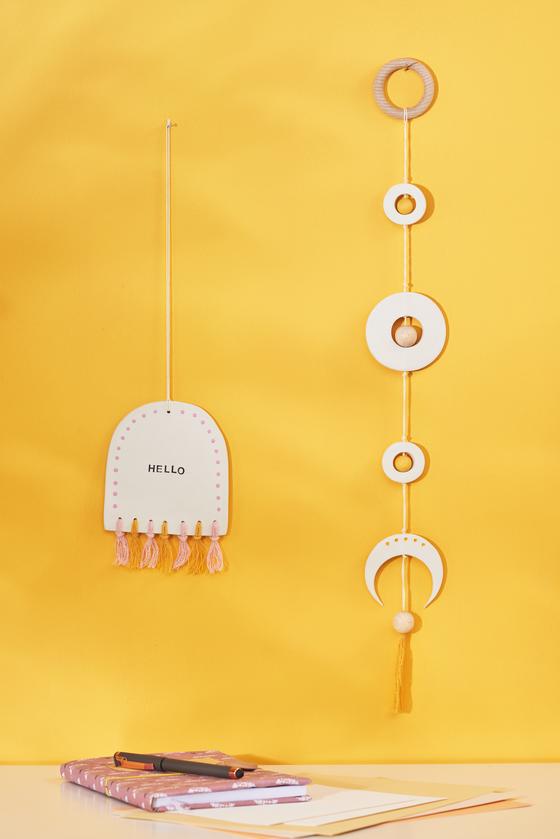 These decorative hangers are a varied decoration for every season. You can hang the deco hangers individually on the wall in the children's room or in front of a window in the living room. The modern shapes and colors make the simple pendants a real decoration highlight.