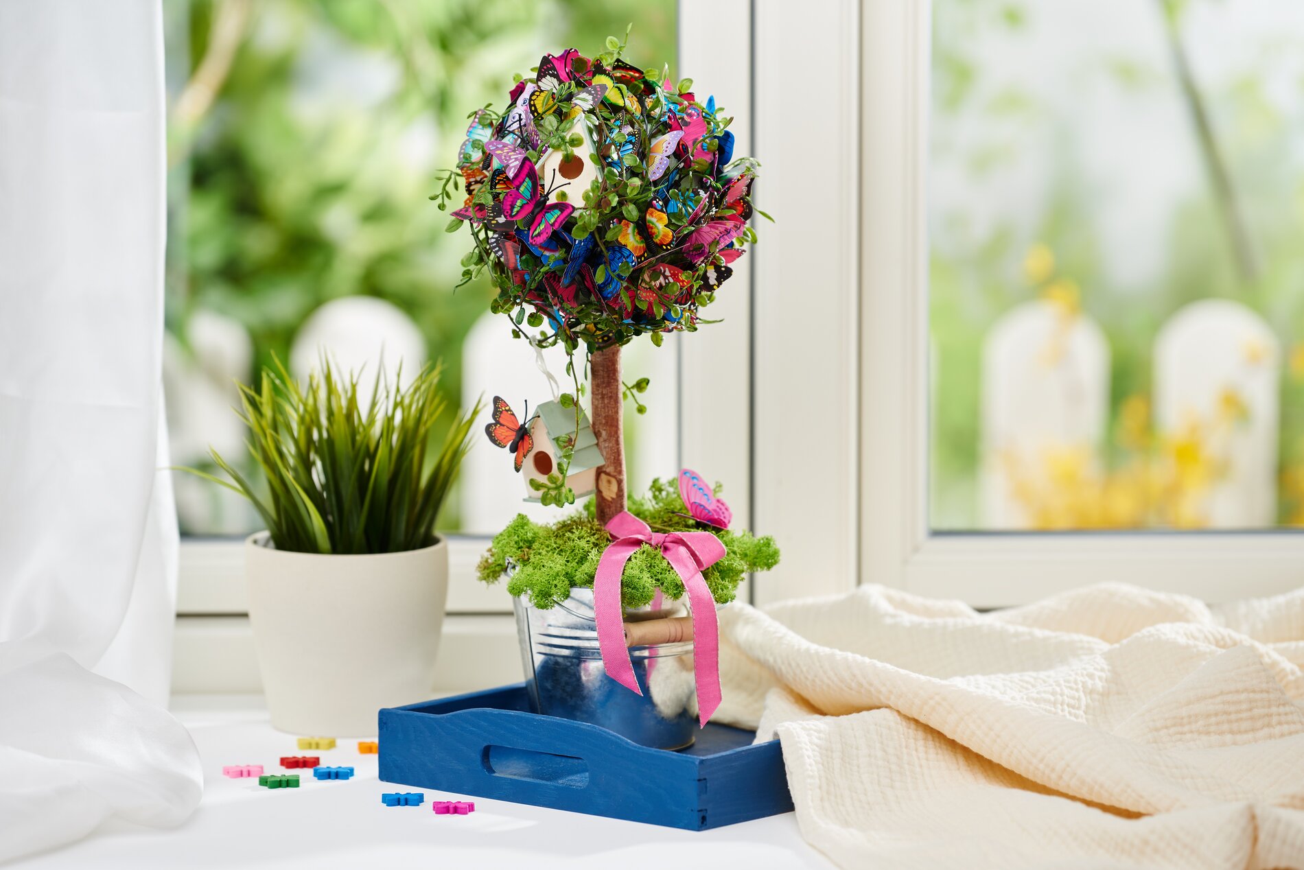 Tip: We have placed the butterfly tree in the photo on a colorfully painted wooden tray for a special look VBS Wooden tray for a special look. If you are still looking for that "certain something" when arranging, simply scatter some leftover butterflies next to the pot.