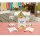 The cards have 5 strands Cord Decorative ribbons wound on them , each 4 m long, in the colours Orange-white, Red-white, Blue-white, Nature-white and Black-white.