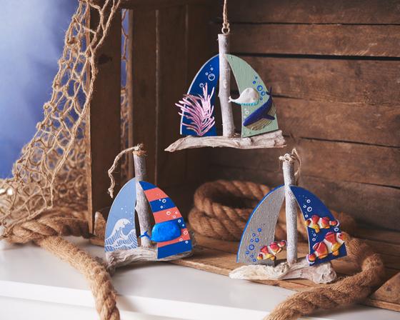 Beautiful decorations are wellness for the soul. With just a only few handicraft steps, the pretty sailing ship pendants can be quickly recreated.