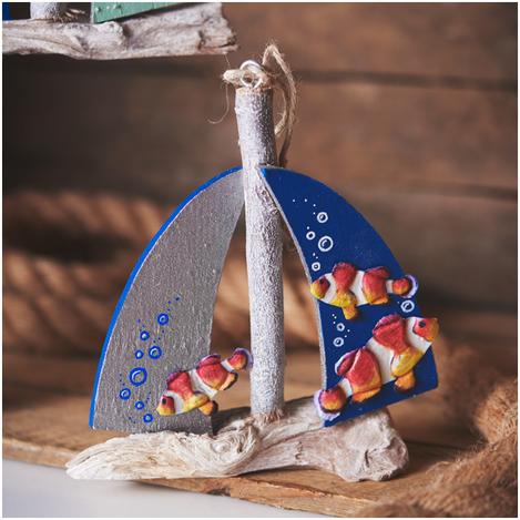 The finished underwater decoration is glued to the sails and finally the sails get that certain something with painted water bubbles and foaming waves.