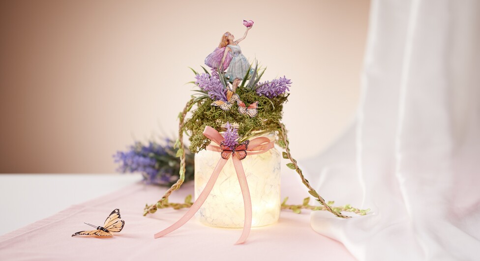 Immerse yourself in the fairytale world of fairies as you conjure up enchanting motifs such as flowers and dreamy scenes on a preserving jar with this craft idea. Be inspired by the magic of fairies and create a unique, enchanted work of art.