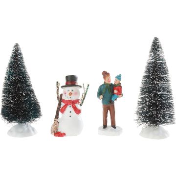 Before the snow dries, carefully press small figures and fir trees of your choice into the still damp layer of snow. As the snow hardens, they will be held securely in place and create a festive overall look.