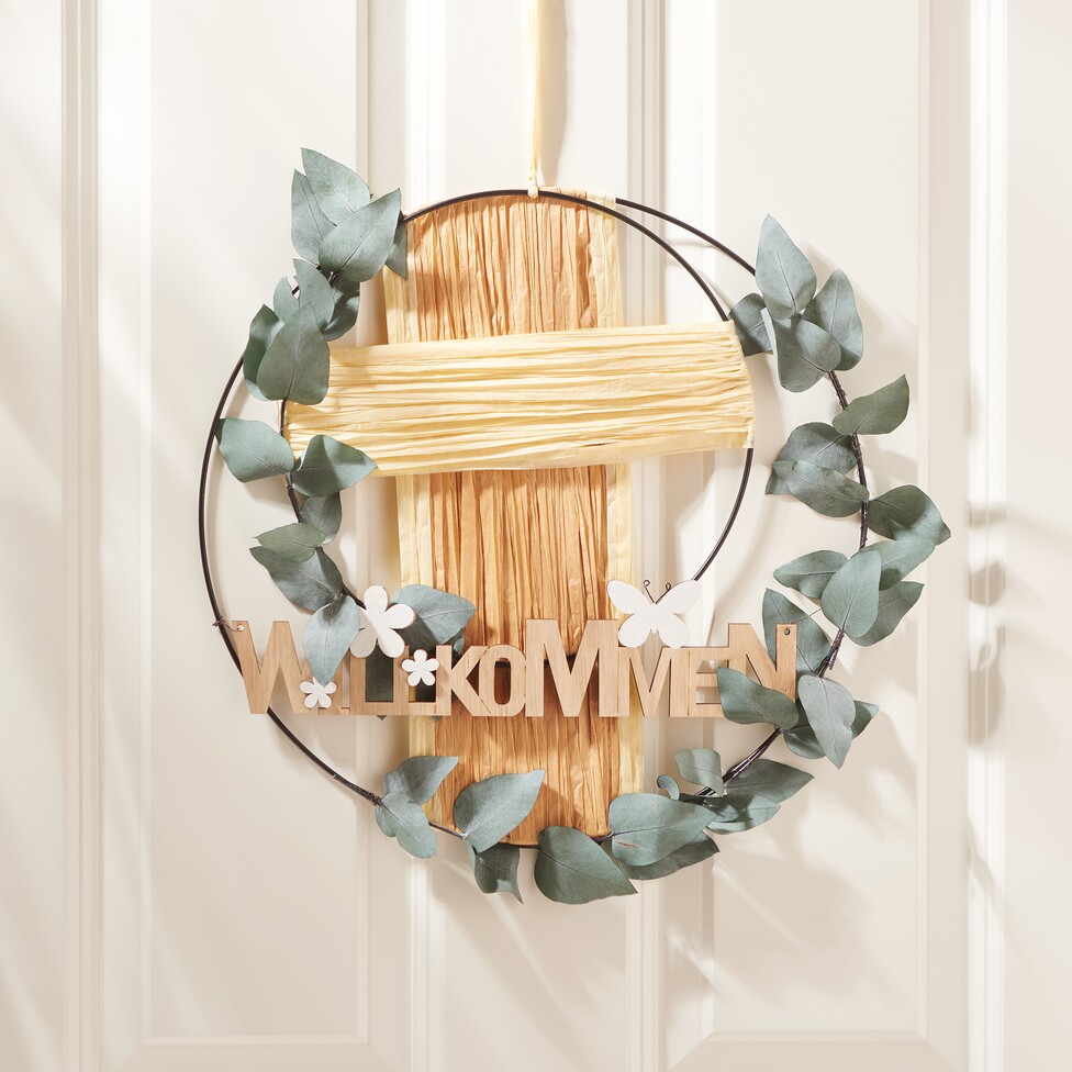 Are you looking for a timelessly beautiful welcome on your door? Then this door wreath made of metal rings in a natural look is just the thing for you. Let yourself be inspired and personalize your home with your own decorative wreath!