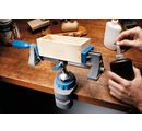 The mounting clamp on the base has a soft layer to prevent scratching the workbench or kitchen table. The clamp can be easily removed and used separately to secure the workpiece. Thanks to the quick release button, the workpiece can be conveniently moved, checked and re-clamped at the touch of a button. The jaws of the clamp have removable rubber caps and V-grooves to increase grip and protection of the workpiece and prevent scratches. Mounted on the workbench, the vise becomes a tool holder to hold the workpiece in both hands while grinding and polishing. A multitool that should not be missing in any workshop or household.
