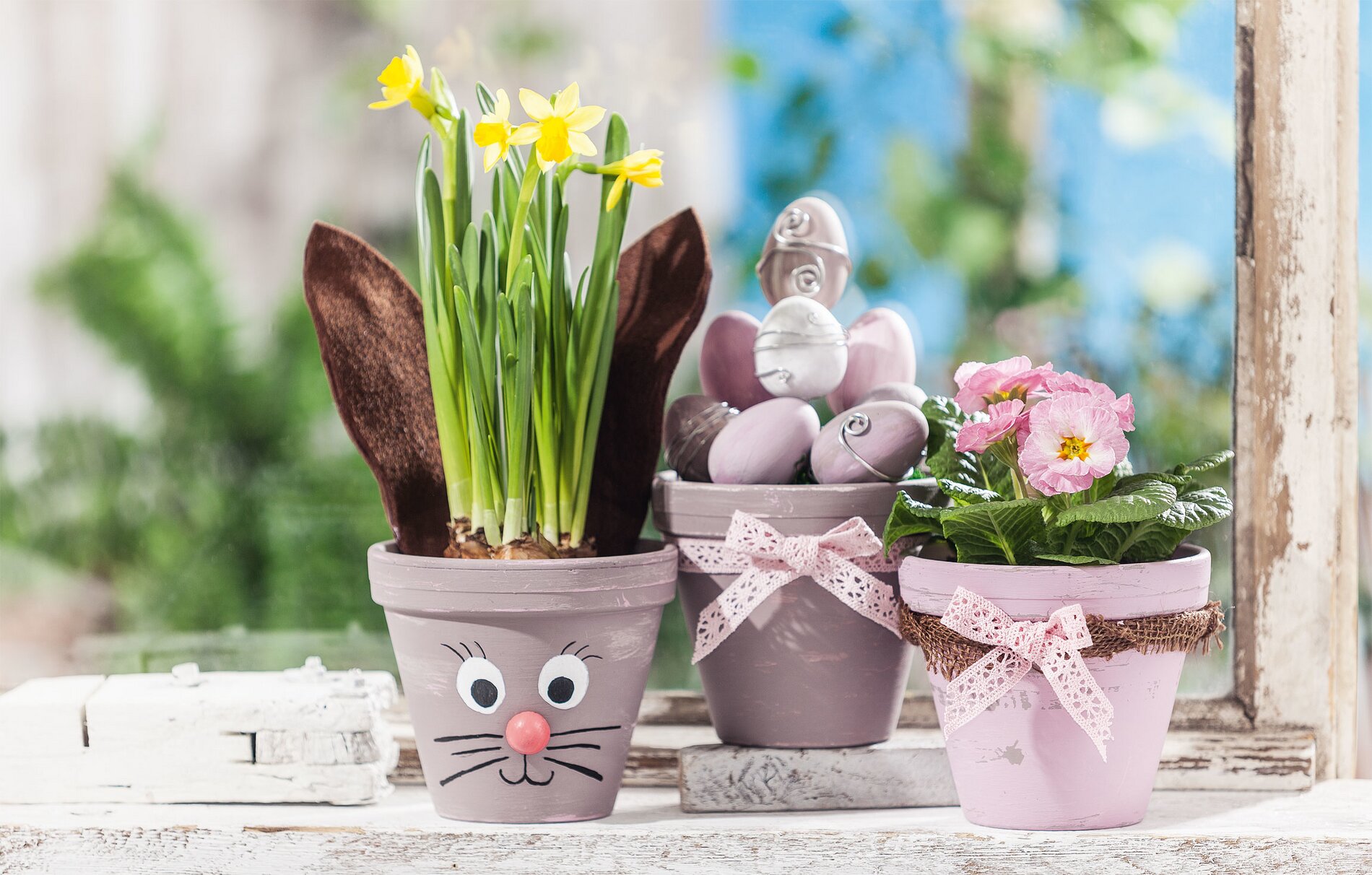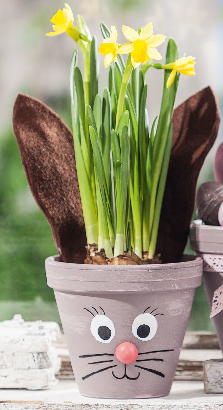Prime the pots with Chalky Color paint. To create an antique look, apply a layer of Chalky Wax when dry and, when the wax is dry, apply another layer of colour in a contrasting shade.
