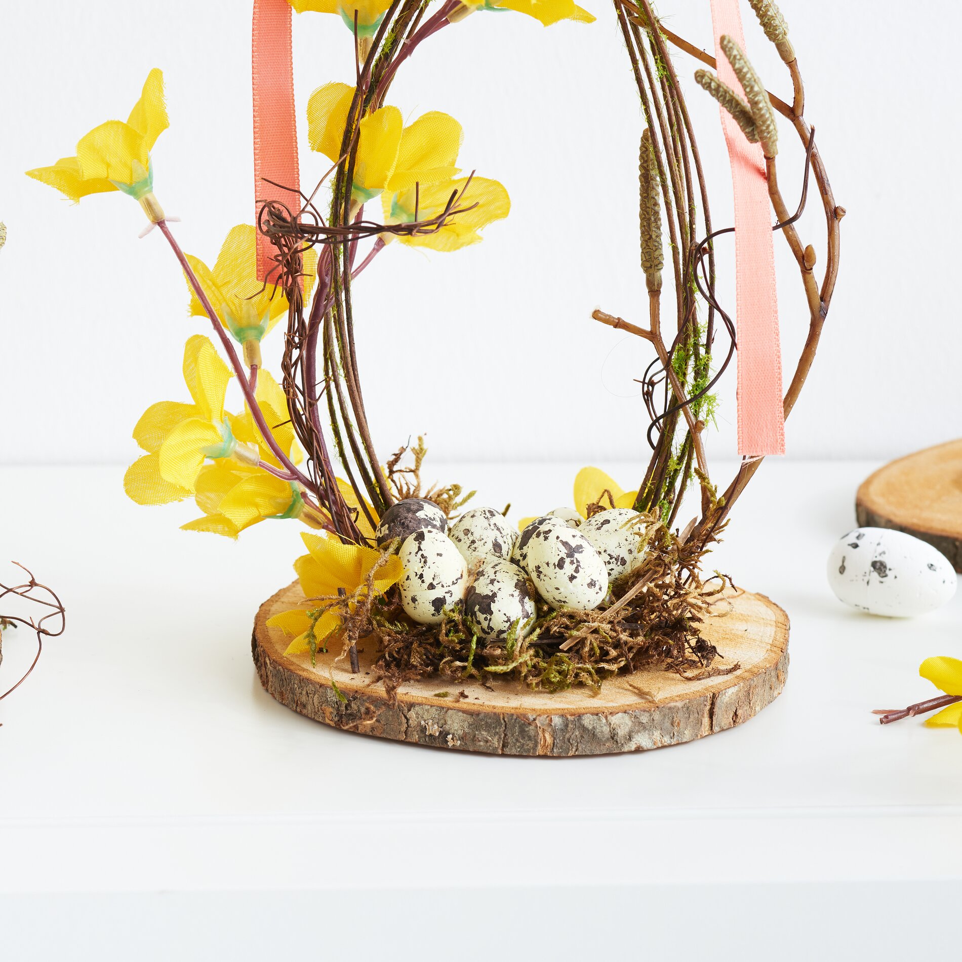 If you're looking for a creative way to give your home a fresh, springtime look, then these crafting instructions are just the thing for you. Learn how to create enchanting floral decorations from artificial flowers and natural materials in just a few simple steps. Whether as a table decoration or as an eye-catcher in the living room - this project will bring fresh colors and lightness to your ambience.
