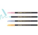With their water-based ink in the filter system, they are fast drying and low odor. The set includes the colors pastel blue glitter, pastel purple glitter, pastel pink glitter and ochre yellow glitter. With their specially designed lace for a fluid, precise writing feel, they add a special touch to notes, diaries, photo albums, gift tags or (table) cards. The glitter effect with the noble, even shine is unique and brings highlights to your everyday life - for school, leisure and work. Also ideal as a gift!