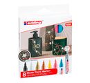 A set consisting of 8 edding 750 gloss-Marker Metallicvarnish /Pastel pens. The set includes the colours white, Gold, Silver, Black, Copper, Yellow, Pink and Light blue. The set comes in an attractive box for storing the glossy lacquer-Marker. Also ideal as a gift!
