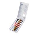 This 5-piece set of edding 780 gloss-Marker MetallicBasic paint contains the colours white, Gold, Silver, Black and Copper. The line width is 0.8 mm. One Ink with permanent opacity and highly pigmented. The pens are equipped with a round tip which is interchangeable. With activation instructions on the pens. The set comes in an attractive box for storing the gloss paint-Marker. A wonderful gift idea