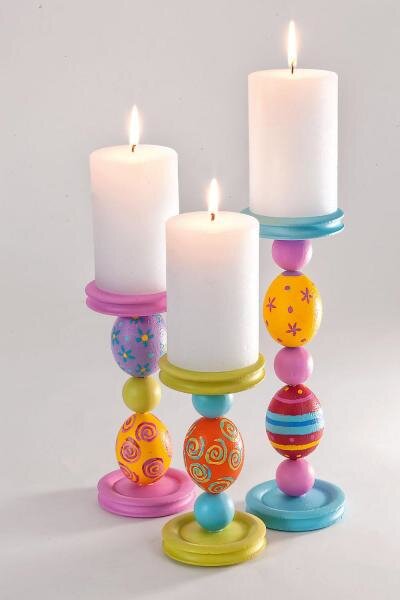 Here you can let your creativity run free. Paint eggs, balls and slices in a variety of colours according to your taste and combine them to create cheerful candlesticks. Even the handicrafts will put you in a good mood!