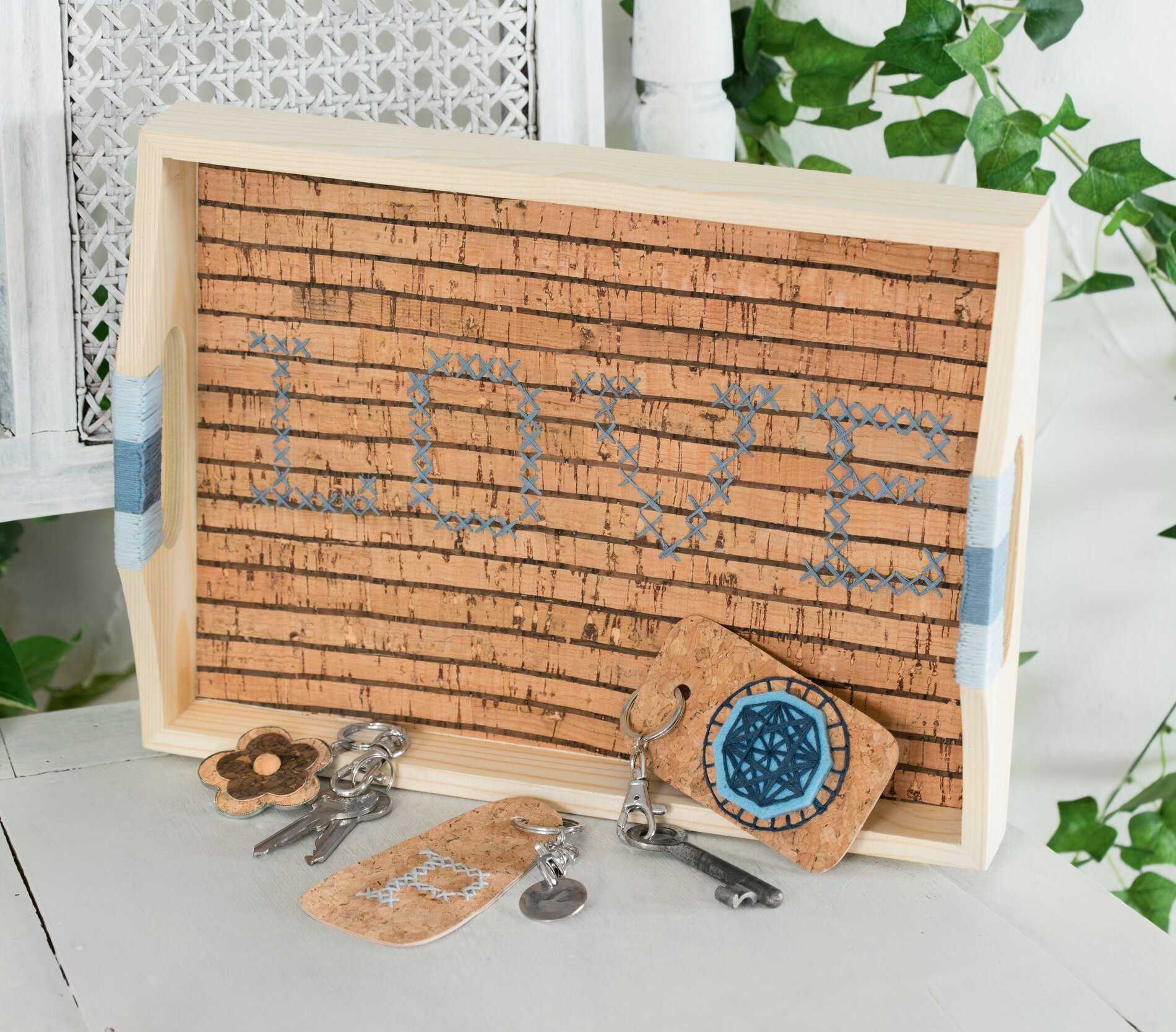 Cork is a natural and noble trendy material that can be used in many different ways in the handicraft sector. Whether an embroidered cork tray or a chic cork key ring - the wow-effect is guaranteed! We show you in these instructions how you can easily recreate the fashionable decorative accessories.