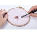 The Embroidery hoop consists of two embroidery rings, between which the piece of fabric is clamped. The brass adjusting screw keeps the fabric structure under tension
