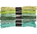 Pretty Embroidery thread set "Shades of green" with 6 hank in a length of approx. 8 m each and a thickness of approx. 1 mm. The embroidery yarn is 6-threaded and has a very fine quality. The hank are made of 100 % mercerized cotton and have a silky, shimmering look.