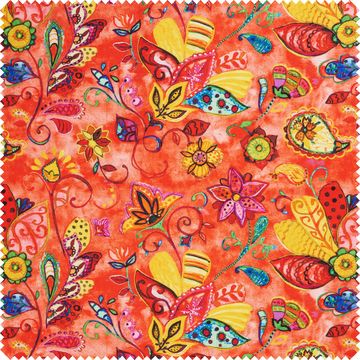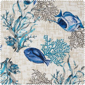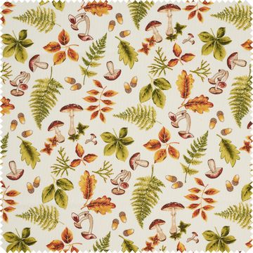 Motif fabric linen optics "Autumn leaves and mushrooms"
