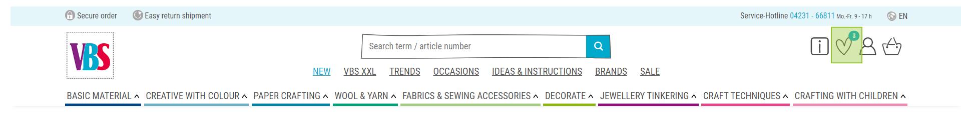Take your time to choose your favourite products. You can do this Selection by clicking on one of them or Watchlist by clicking on the green field in yours. The Cart icon in the upper right corner of your screen shows you the number of products you have selected. For those Order you now click on this symbol.