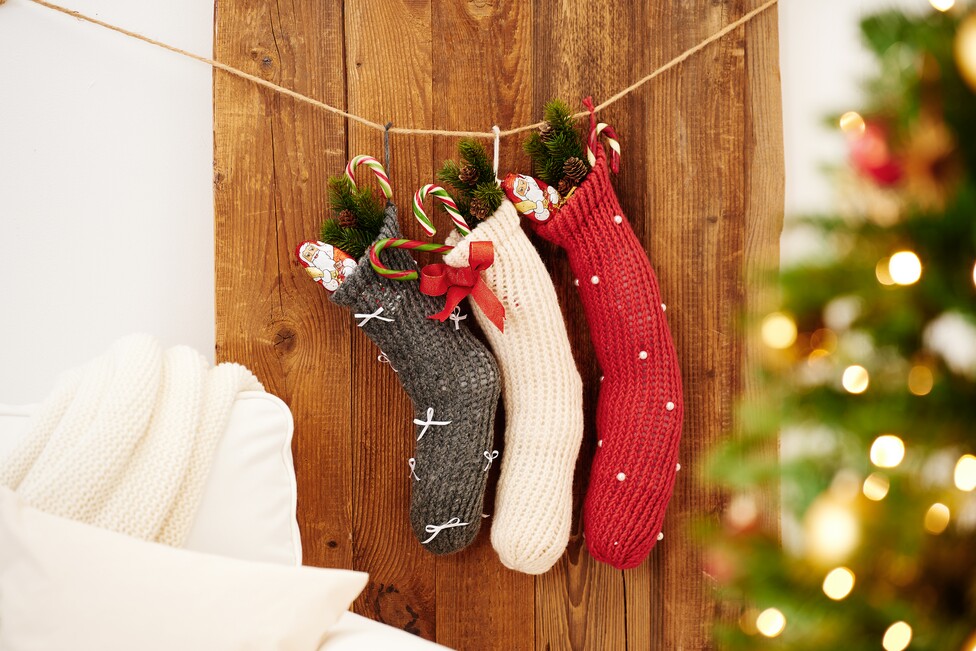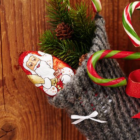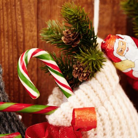 Finally, you can attach a thread to the top of the sock so that you can hang up the new Christmas sock later. Decorate it further to your personal taste with tied bows and small sewn-on beads.