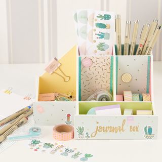 We recommend using handicraft glue to ensure that the individual parts are firmly attached. However, this is not included in the scope of delivery, but you can easily order it in our store. With a size of 24 x 18 x 12.3 cm, the Flexio "Organizer - Toolbox" offers you enough storage space without taking up too much space on your workstation.