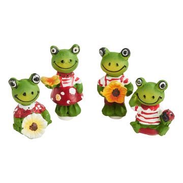 Welcome to Frog "Freddy", the cute frog! With its four figures, each with a little butterfly sitting on it. Frog "Freddy " is an indispensable companion for spring and summer. These lovingly designed figures are made of polyresin and have an adhesive dot on the underside. This means they can be easily attached to the surface to be decorated. Whether in small flower arrangements, in a decorative fountain or on table decorations, cards or gift wrappings.