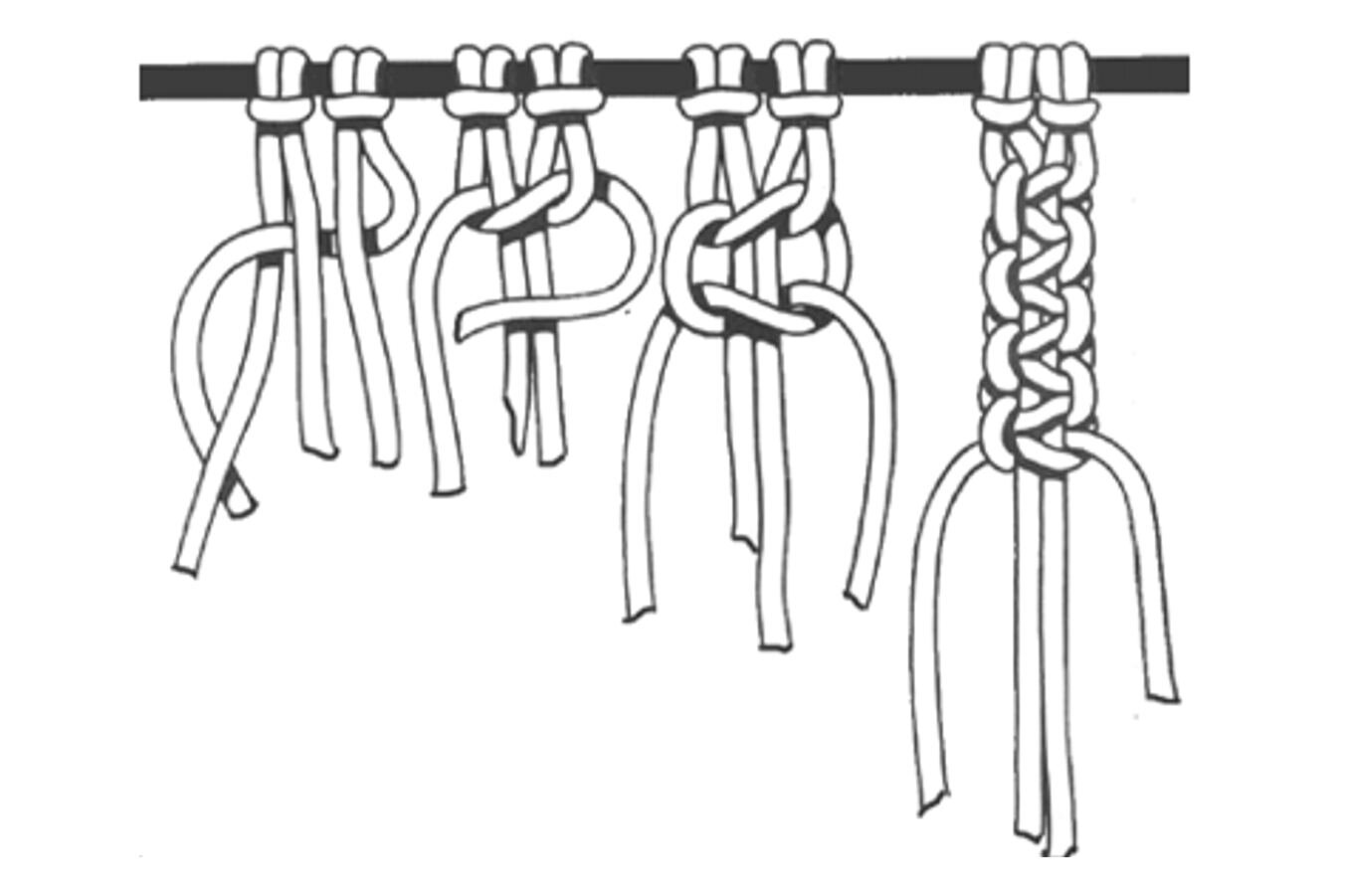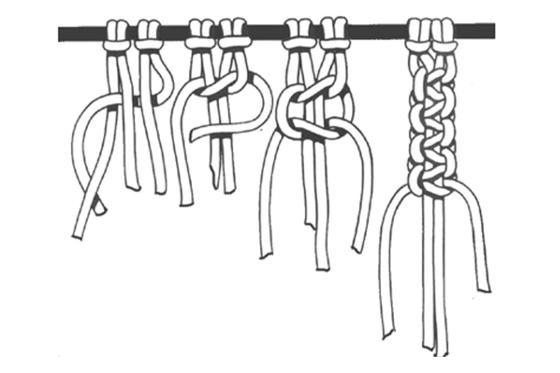 Repeat this half weaver knot continuously, starting with the left and right knotting cord alternately.