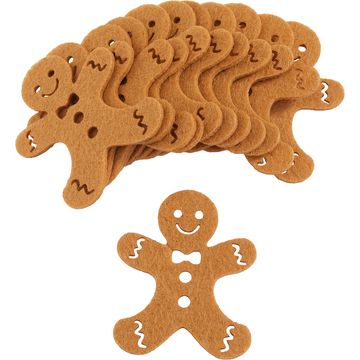 The felt Gingerbread men are 5 cm wide and 6 cm long and come in a practical set of 12. Ideal for adding a charming touch to lantern jars, gift cards or presents. You can create unique accents by combining them with ribbon, glitter or wooden beads.