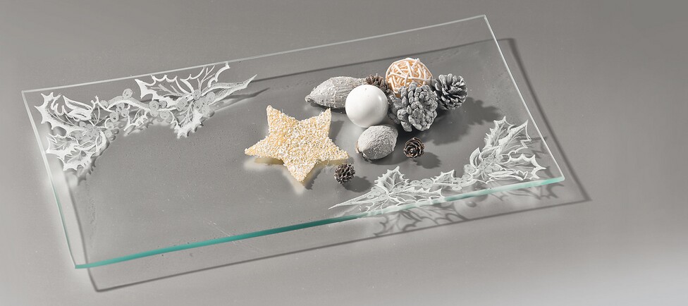 Download the motif template and fix it with crepe-Adhesive tape under the glass plate . Carve the contours with the fine diamond pencil.