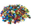 These glasses-Mosaic stones "Bunter Mix" are transparent and opaque with a size of about 1 cm x 1 cm. In a plastic box there are 454 g Mosaic stoneswith a thickness of about 3 mm.