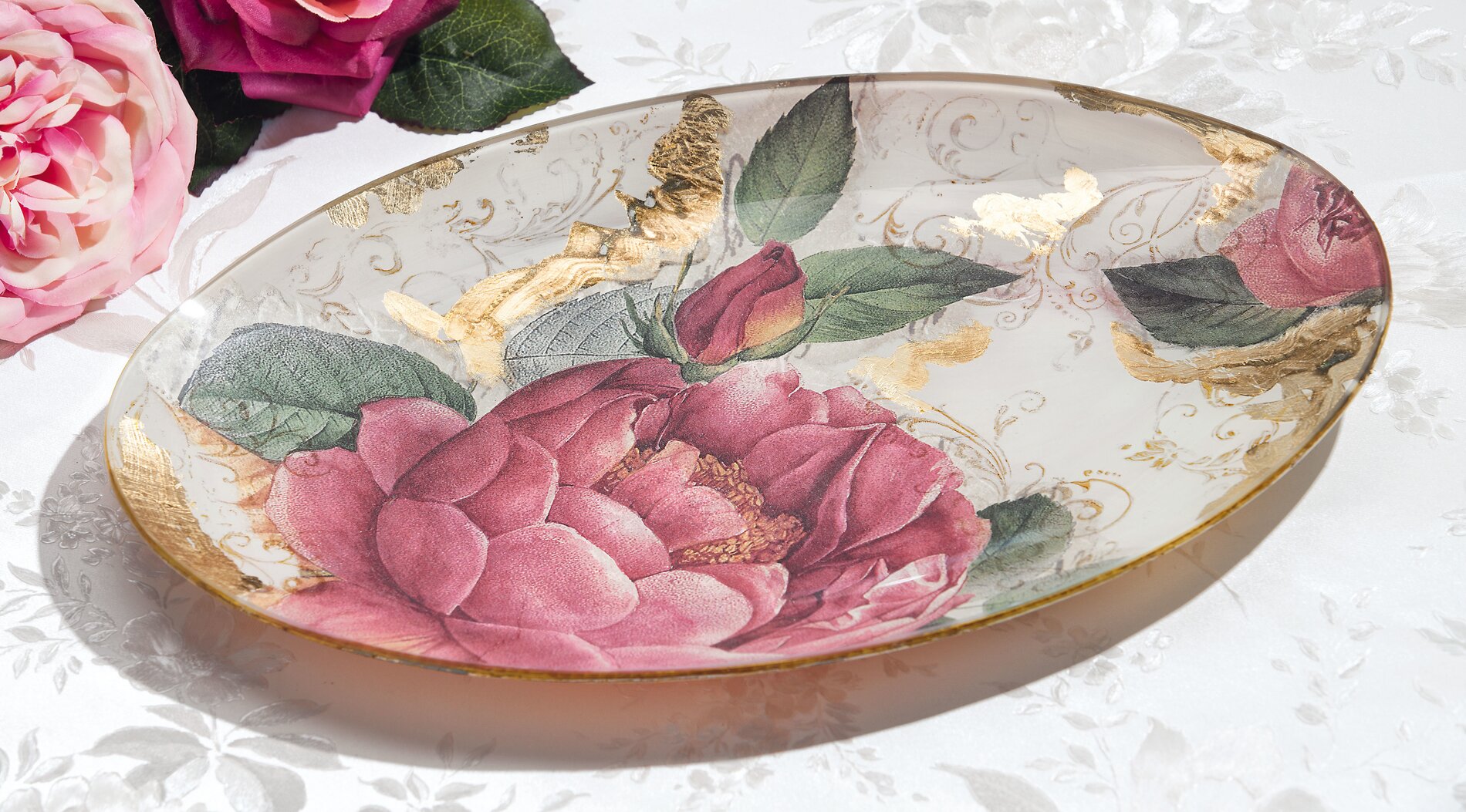 Only a few steps are necessary to create this noble glass plate. Motif straw silk, Leaf metal and stamp motifs result in a magical total work of art.