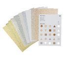 The high-quality glitter paper Glamour Mix Block has 10 sheets with a weight of approx. 180 g/m². The block is in DIN A4 format. The sheets are continuous in different Silver and gold tones.