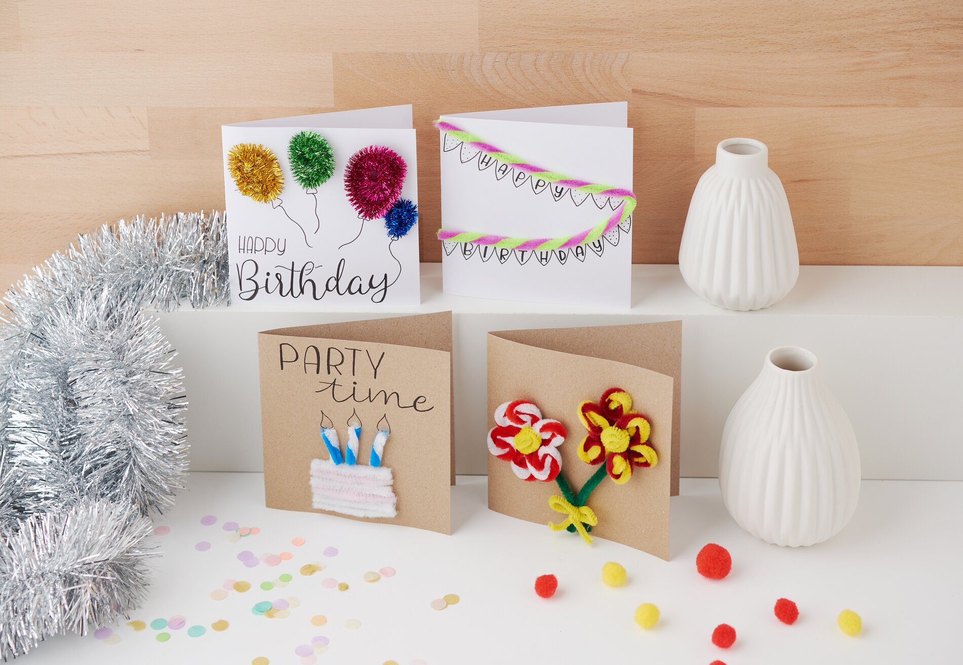 Sometimes it doesn't take much to turn a plain card into something really special. With chenille wire, some glue and a fineliners , you can create individual greeting cards in no time at all, which impress with their texture and slight 3D effect. These crafting instructions show you step by step how to design creative cards - ideal for birthdays, greetings, thank you cards or small tokens of appreciation.