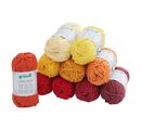 From light yellow to orange to dark red, this compilation Gründl Cotton Quick Mini "Shades of Yellow and Red" contains 10 harmoniously matched crochet yarns in great shades. Each ball has a weight of approx. 15 g and a run length of approx. 37.5 m. Made of 100% cotton, mercerized, gassed and combed. For optimal processing, a needle size of 3 - 4 is recommended.